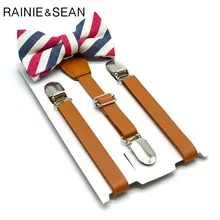 Selling Selling Well RAINIE SEAN Leather Suspenders Kids Brown Braces Belt Boys Girls Adjustable 3 Clips Fashion Bow Tie and Suspender Set Unisex Suspenders