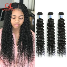 Cheap price Queenlife 3 Bundles Deal Deep Wave bundles Brazilian human hair Bundles 8-28 inches 1/3/4 pcs Remy Hair Bundle Medium Ratio Human Hair (For Black) Special Order Now! good quality
